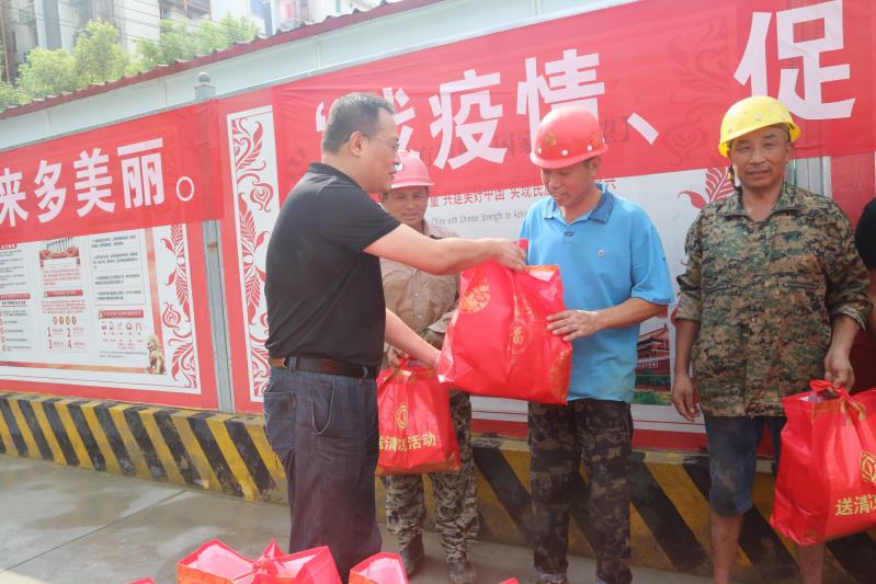 入夏以來,南昌旅游集團積極開展“戰(zhàn)疫情、促文明、保安康”送清涼活動,7月28日上午,南旅集團黨委書記、董事長、總經(jīng)理李明,黨委副書記李虹虹,黨委委員、副總經(jīng)理陳皓等領(lǐng)導(dǎo),冒著高溫,來到我市重點工程“繩金塔民俗風情街”項目,送上綠豆、蓮子等愛心禮包,向戰(zhàn)斗在一線建設(shè)的干部職工表示慰問。李明在聽完工程建設(shè)情況匯報后,仔細詢問了現(xiàn)場工人工作、生活狀況,叮囑項目部要一手抓好工程建設(shè),一手抓好防疫防暑,切實關(guān)心工人身心健康,確保職工安全生產(chǎn),文明施工,為我市創(chuàng)建健康、文明城市作貢獻。公司黨委書記、總經(jīng)理龔戩等班子成員全程陪同。
